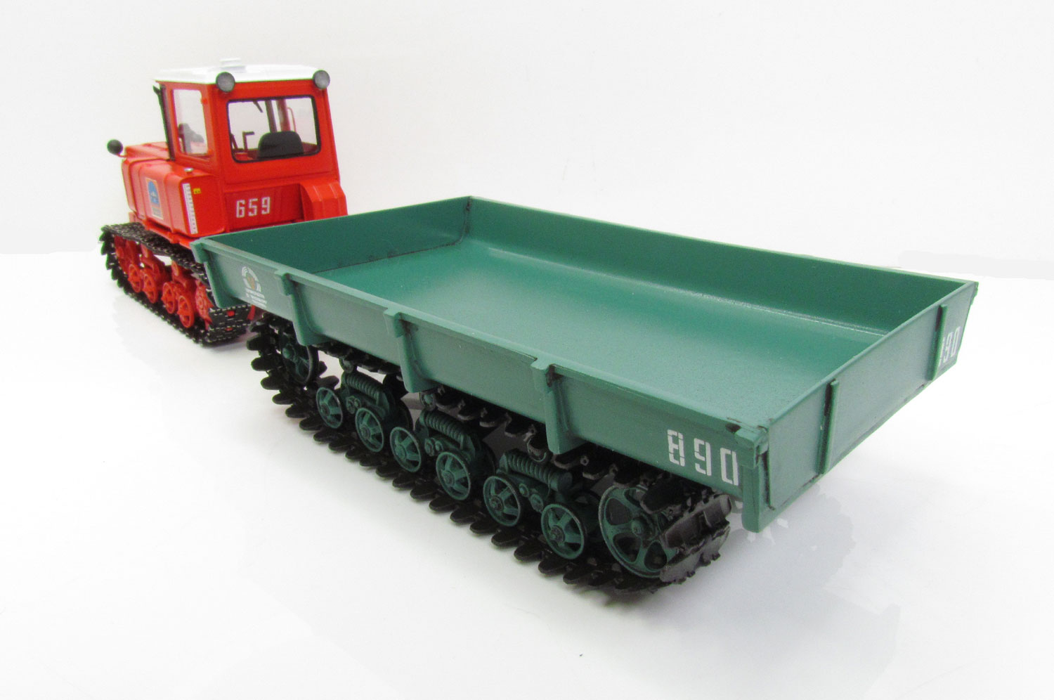 Для трактора ДТ-75 мастерская запланировала выпуск гусеничного прицепа МТП-24. Это очень интересный зрелищный прицеп, который отлично дополнит любой подходящий трактор. Но мы знаем, что изделия Моделстрой находятся в высоком ценовом диапазоне. Прицеп (по сложности разработки и сборки) мало чем отличается от трактора. Гусеничная ходовая в нем даже сложнее, так как содержит больше катков. И изначально мастерская рассказала магазину о планах построить прицеп в том же варианте сложности и цены, в какой и находятся ее трактора. Т.е. прицеп с металическими деталями, фототравлением, подвижной ходовой на металлических траках и т.д. По предположению мастерской, стоить такой прицеп будет примерно столько же, сколько трактор от Моделстрой. Т.е. порядка 9-12 тыс.руб.