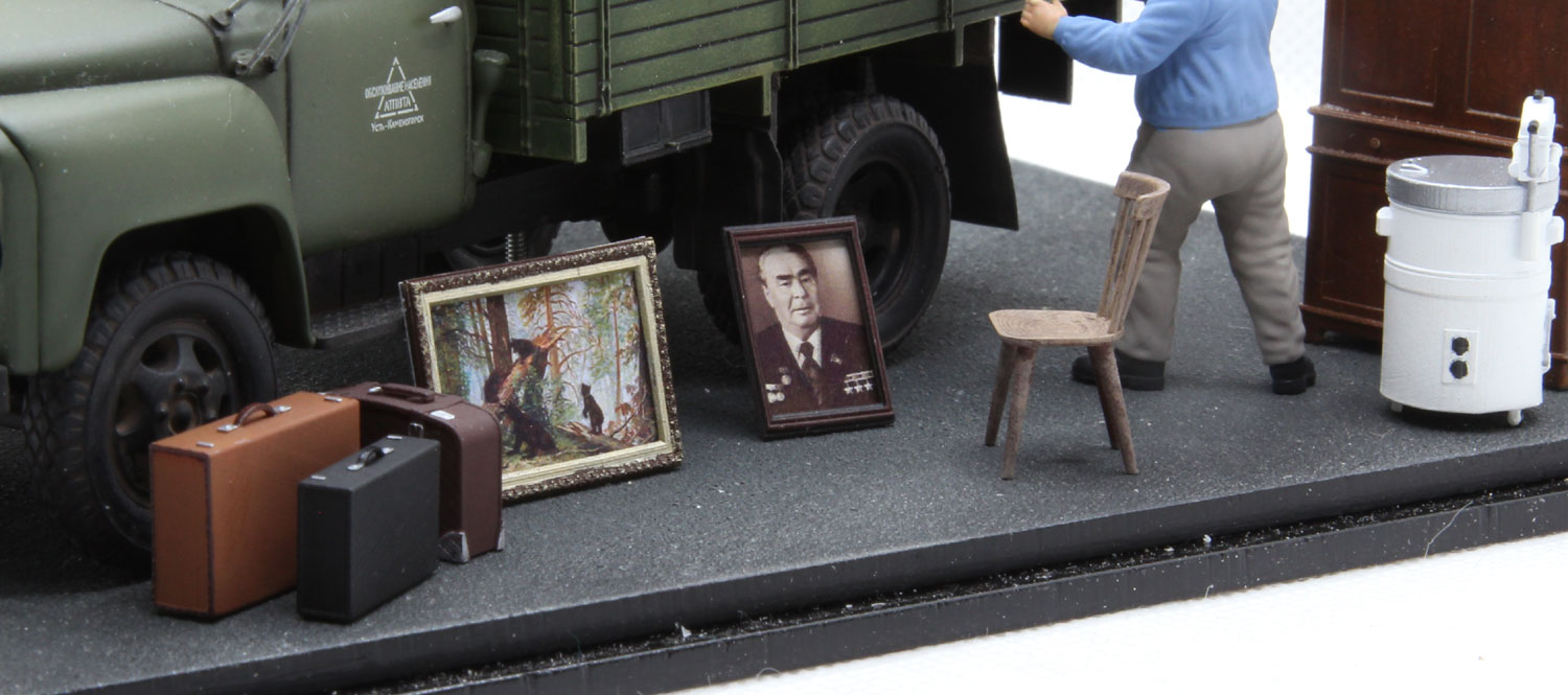 Композиция в масштабе 1:43. В боксе под прозрачным колпаком.