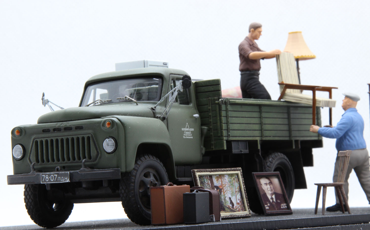 Модель - разобранная и перекрашенная модель ГАЗ-53 от НАП, с доставлением мелочей (стёкла фар, дворники, зеркала, декали и т.д.)