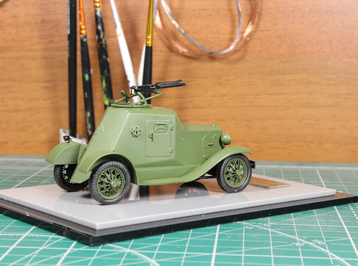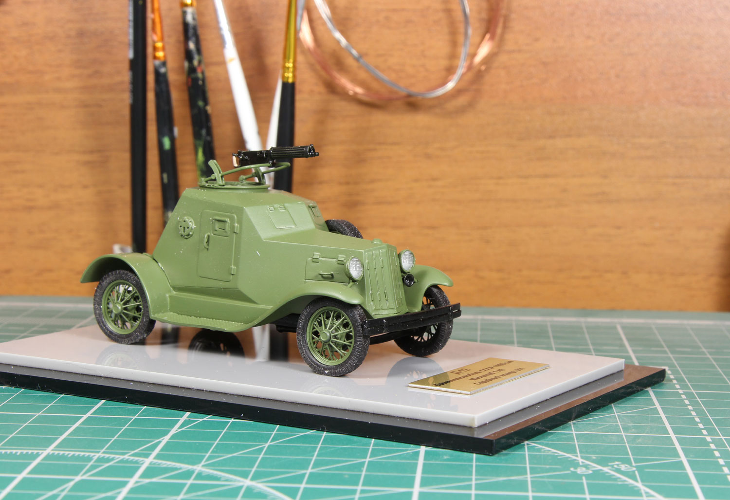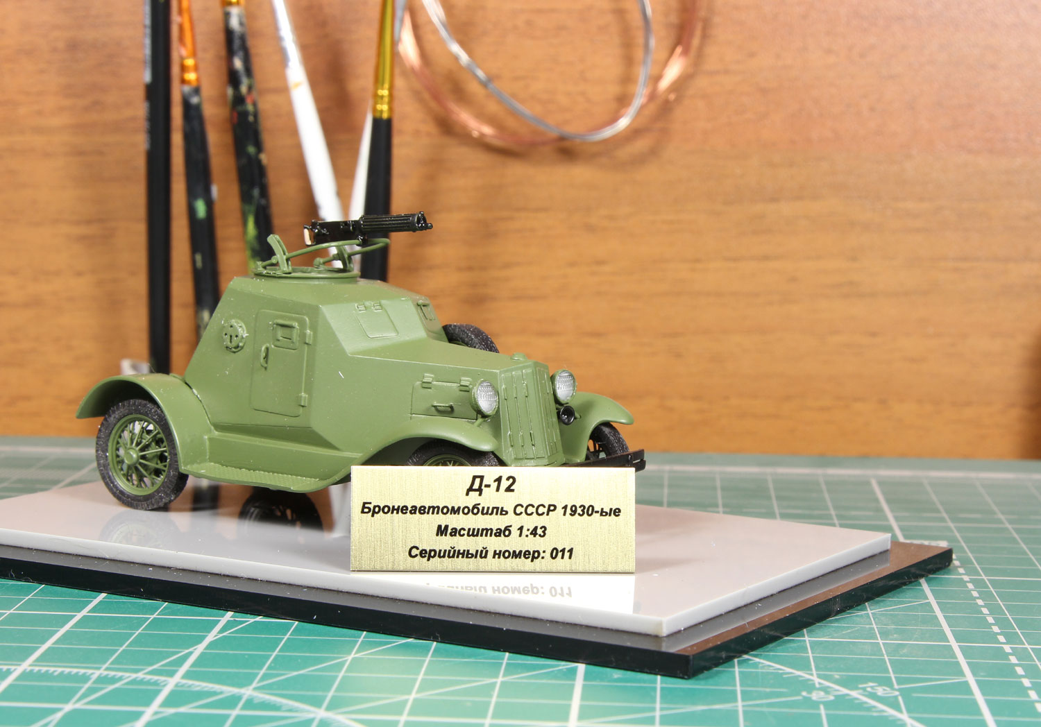 Масштабная модель бронеавтомобиля Д-12. Советский лёгкий бронеавтомобиль межвоенного периода и времён Великой Отечественной войны. При создании бронеавтомобиля применялось заднеприводное шасси отечественного легкового автомобиля «ГАЗ-А». Будучи разработан в 1931 году, является первым советским серийным лёгким бронеавтомобилем.