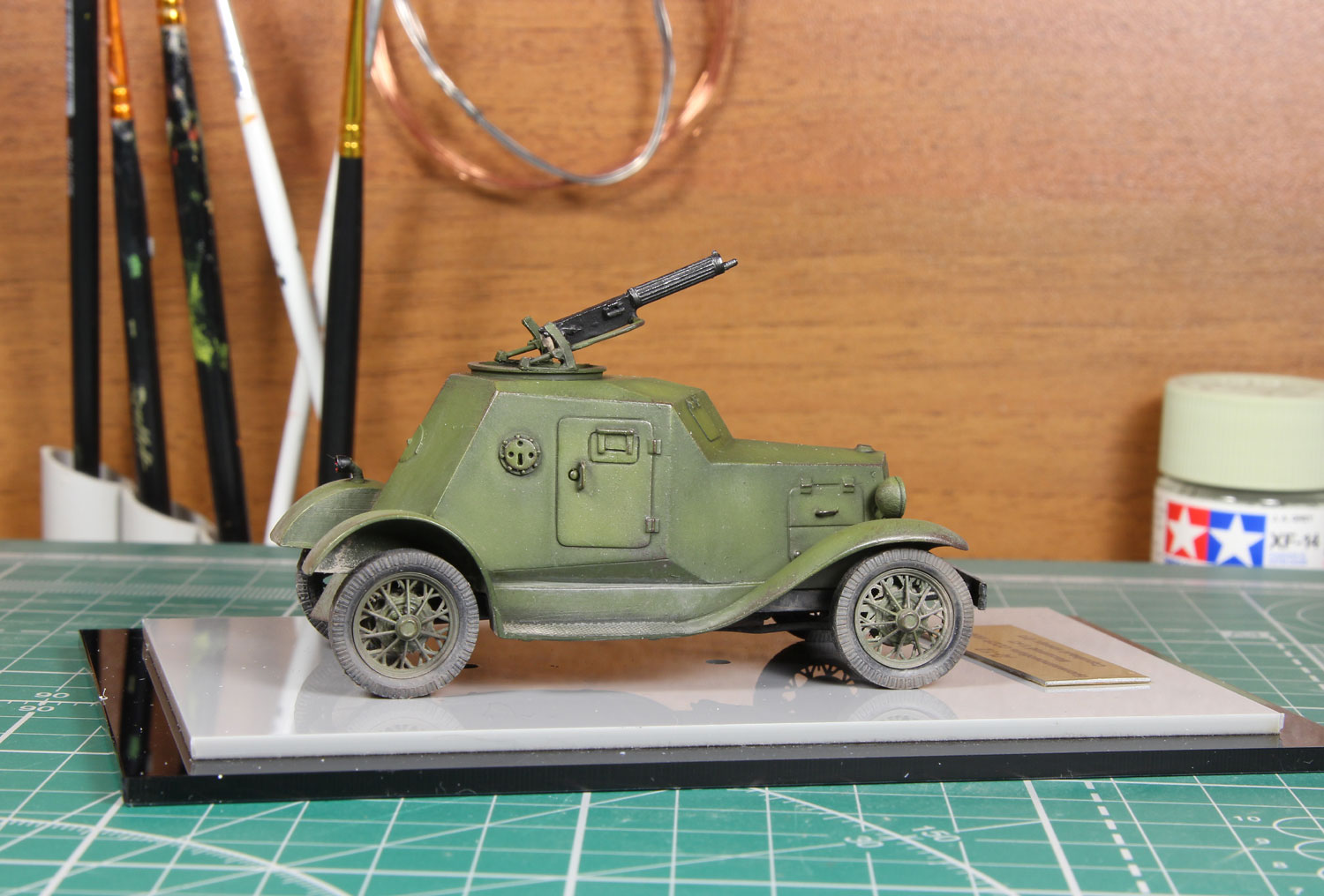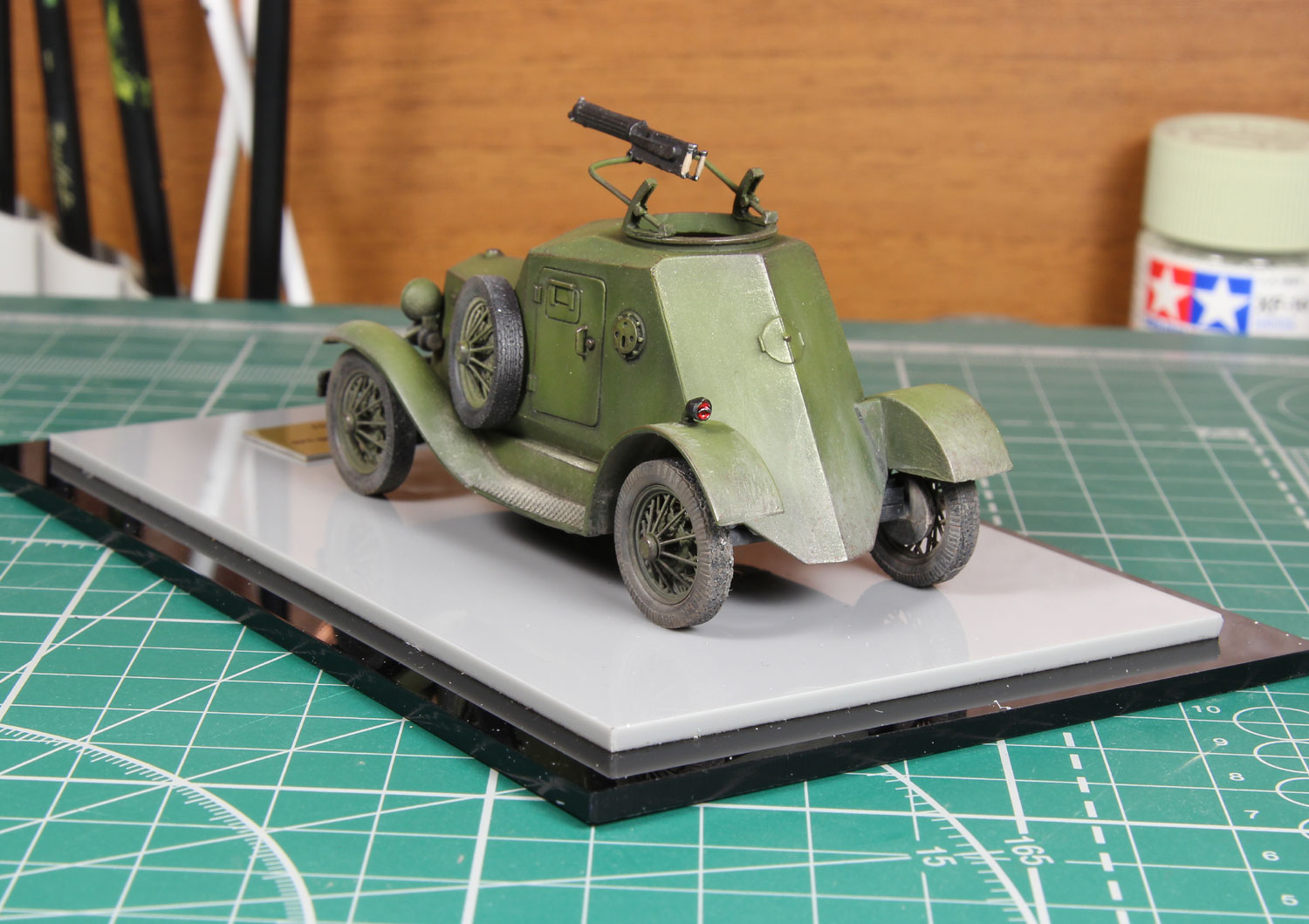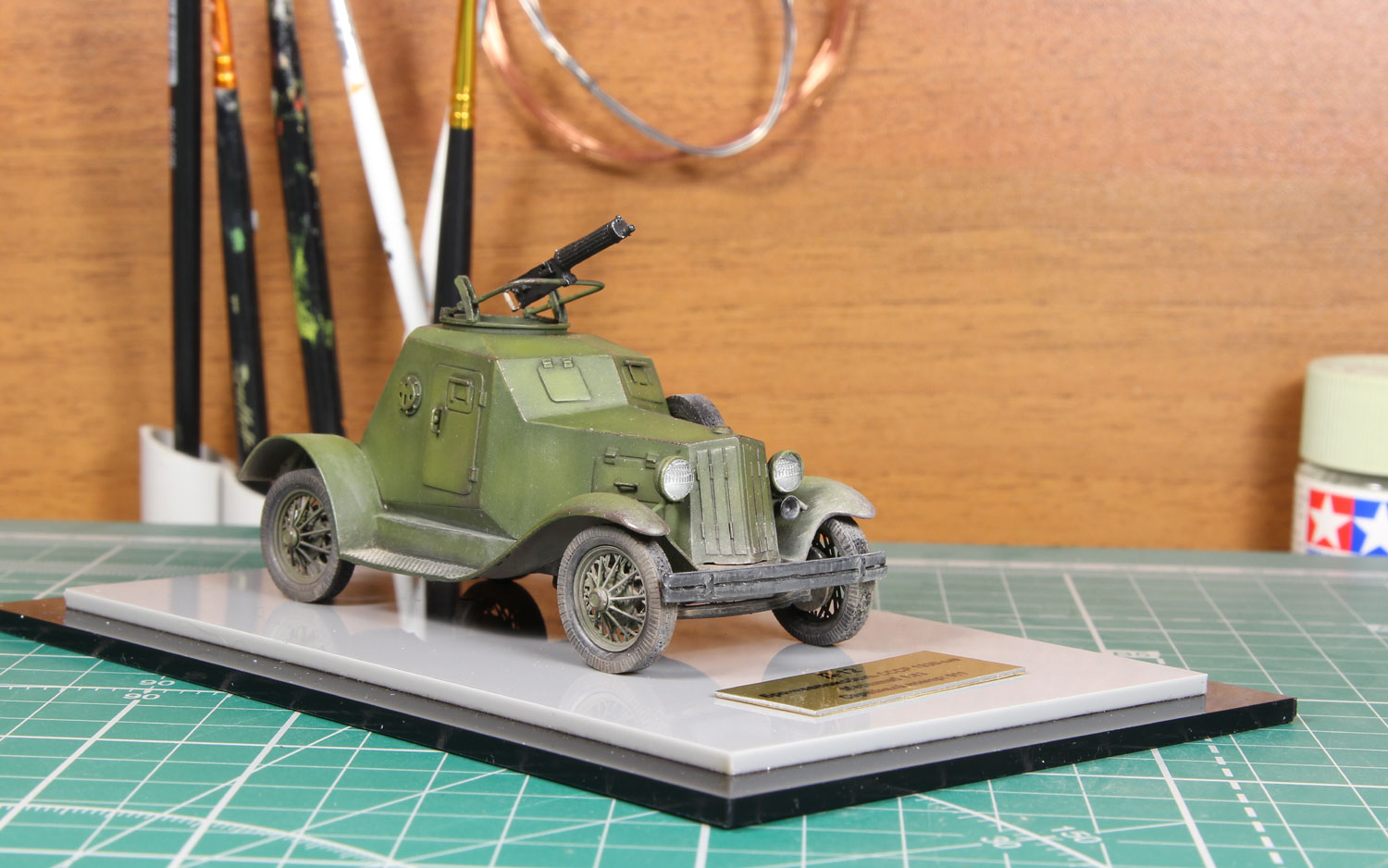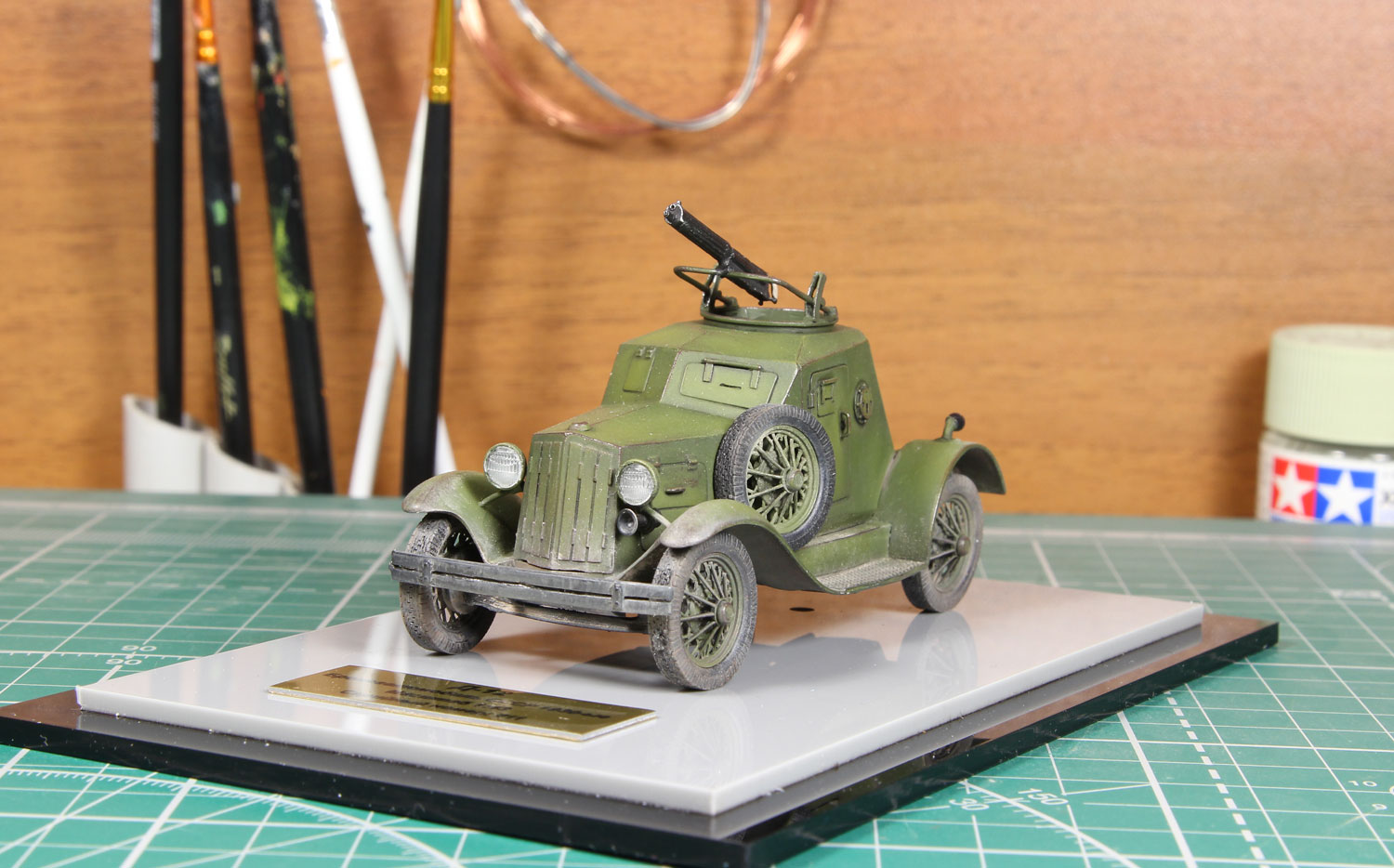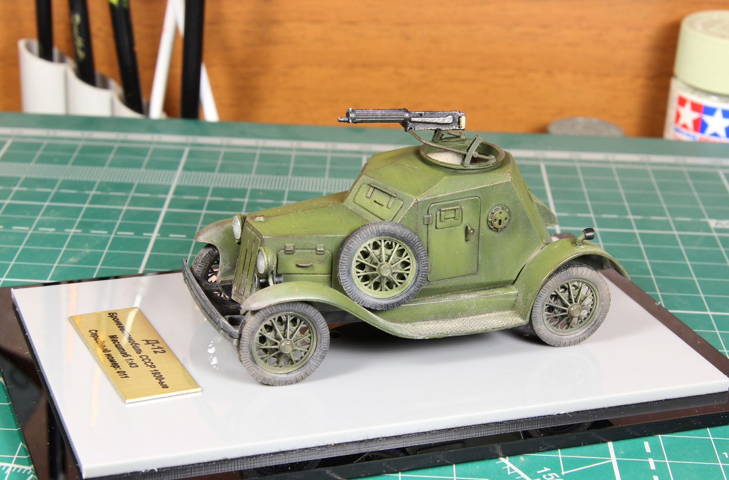 Масштабная модель бронеавтомобиля Д-12. Советский лёгкий бронеавтомобиль межвоенного периода и времён Великой Отечественной войны. При создании бронеавтомобиля применялось заднеприводное шасси отечественного легкового автомобиля «ГАЗ-А». Будучи разработан в 1931 году, является первым советским серийным лёгким бронеавтомобилем.